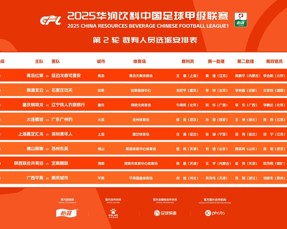 中甲第2轮裁判:牛明辉执法焦点战重庆铜梁龙vs辽宁铁人